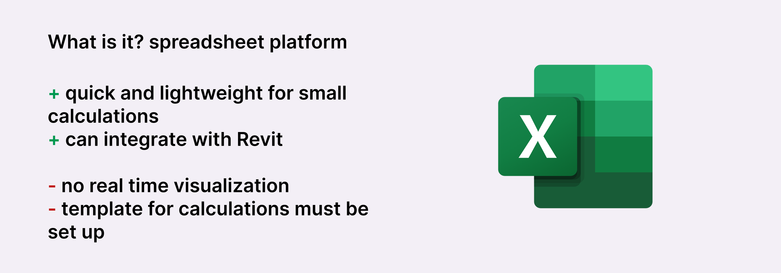An unexpected finding is that spreadsheets are often used to model the forces on buildings or even draft up designs. People mentioned that it was sometimes just easier to use a spreadsheet. This is because spreadsheets were already set up to be templates that just require users to plug in values to model the forces. Additionally, it just took fewer steps to adjust structural elements in a cell as opposed to in other softwares. As these templates were specific to only some types of projects, they were only used for those purposes. This is an issue with current platforms, in that they must be set up from scratch to begin a project.