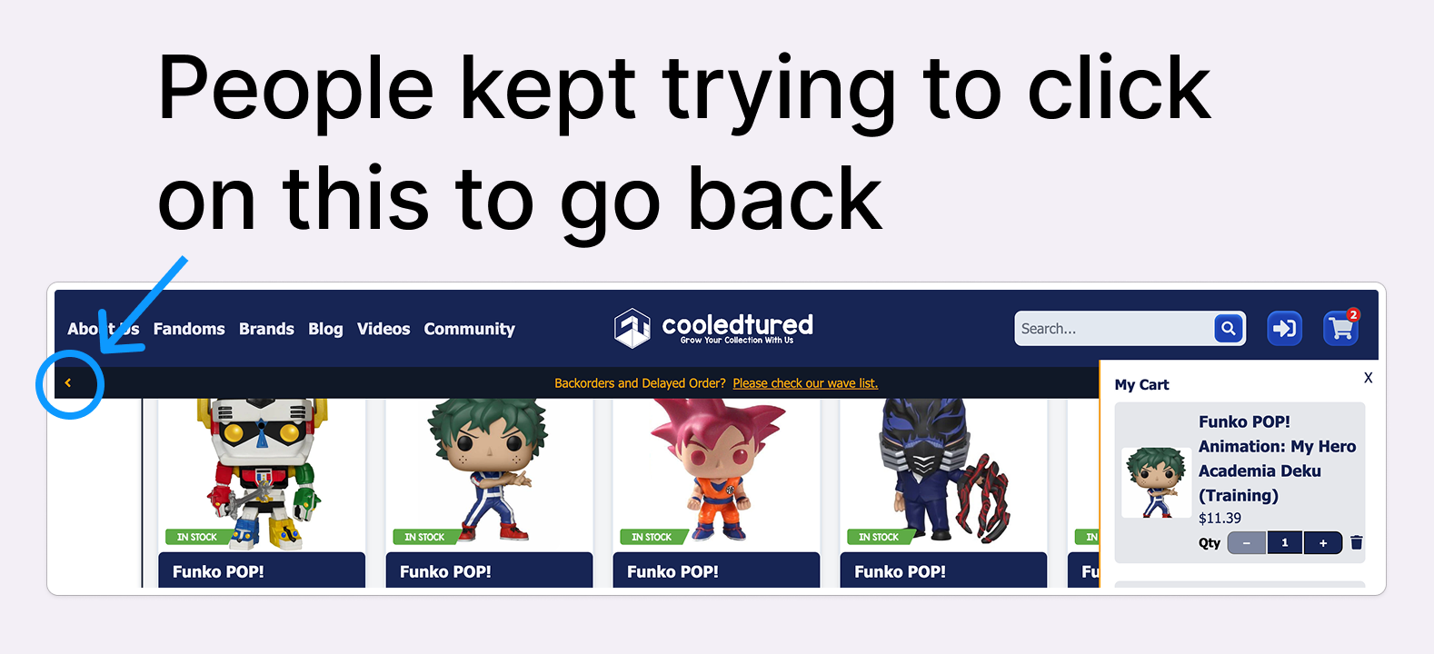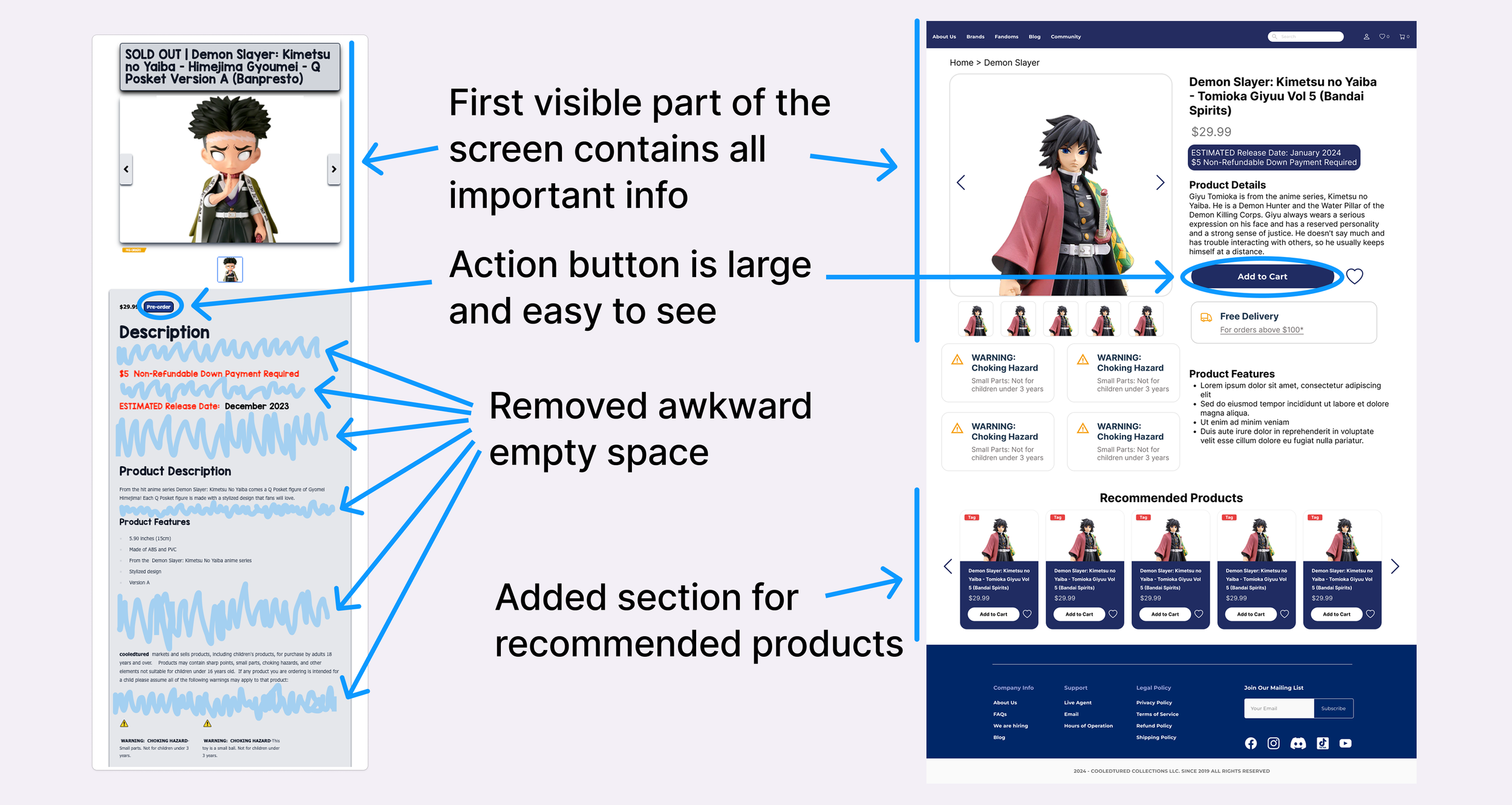 People seeking to buy Anime toys on Cooledtured find the website unintuitive to navigate, disjointed, and inconsistent which led users to feel that it was a less legitimate site and drove them away from purchases.